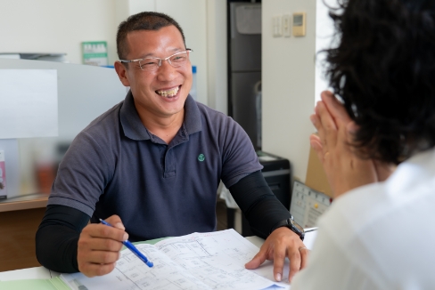 お客様の住まいや店舗を訪問し、間取りや設備の現状を確認、丁寧にヒアリング。